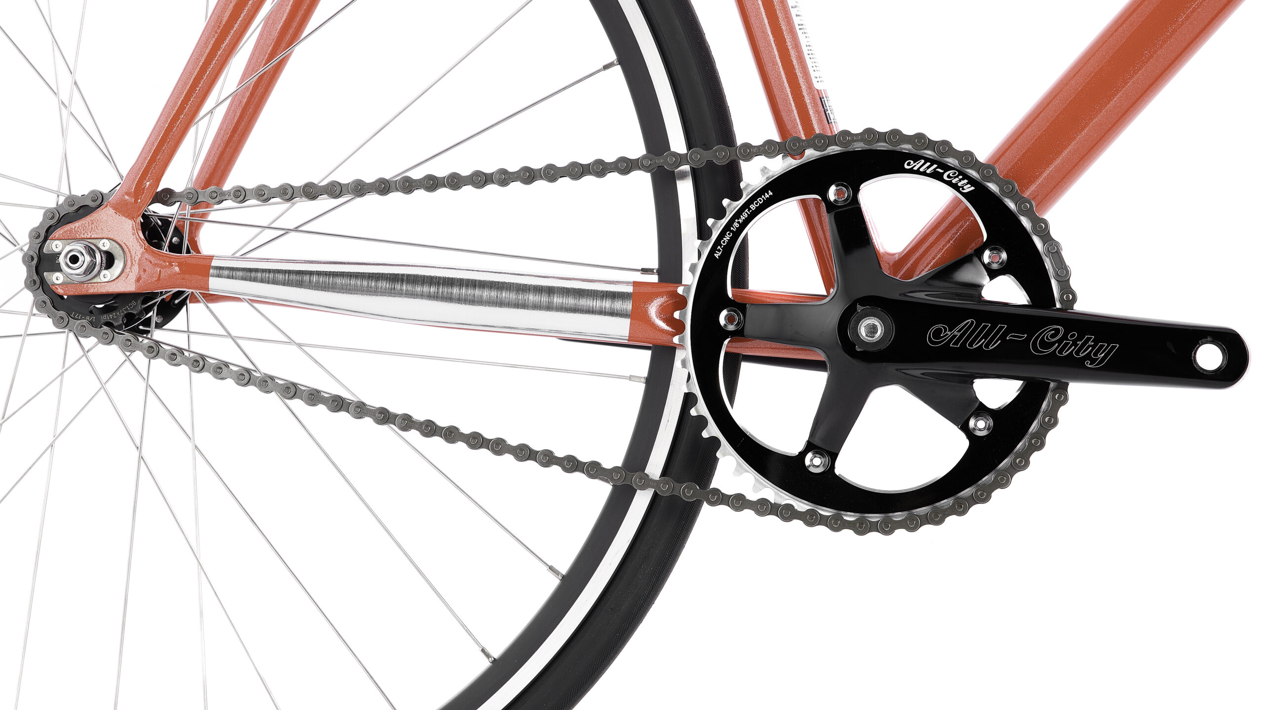 The Thunderdome 700c comes with a single-speed drivetrain that keeps things simple. It features a 17T All-City Standard cog on the rear and an All-City 612 Track Crank with a 49T cog on the front. Tektro brakes provide excellent stopping power. Alex AT505 rims are paired with Donnelly Strada LGG tires. You’ll easily be able to conquer that next lap around the velodrome.