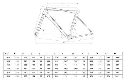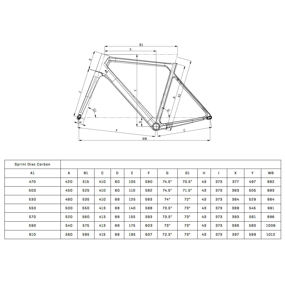 The sprint frame is compatible with larger volume tires to enhances comfort and grip without affecting rolling efficiency or speed. The frame features internal cable routing, keeping the body of the bike clean and pared back.