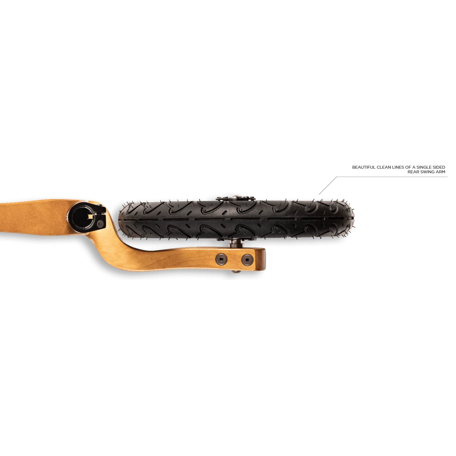 The Early Rider Bonsai 12″ wheel combines the beauty of a birch wood frame with the performance of an aluminum headset. With it, you’re sure to get attention. The horizontally laminated SuperPlyâ„¢ frame is precision engineered to take advantage of the wood’s natural suspension for fantastic ride characteristics, while being stiff enough for a single chainstay design.