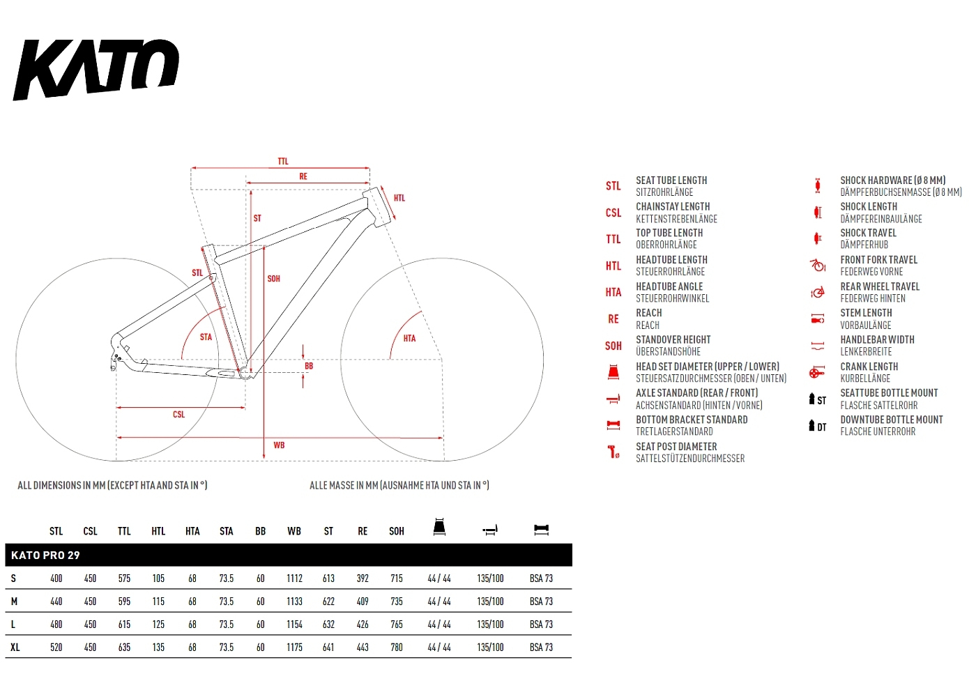 Fact Sheet of Ghost KATO PRO – 29" Mountainbike – 2024 – light grey pearl / black matt Product Name: Ghost KATO PRO – 29" Mountainbike – 2024 – light grey pearl / black matt Manufacturer: Ghost Bikes Item Code: GOS557240 activity: Cycling gender: men material: Aluminium usage bikesport: MTB hubs: Shimano HB-TX505 ,QR ,Shimano FH-MT401 ,QR spokes: DT Swiss 2.0 rims: Rodi Excalibur XC 19 chain: Shimano Deore CN-M6100 cassette: Shimano CS-M6100 rear derailleur: Shimano Deore RD-M6100 ,12-speed bottom bracket: Shimano BB52 BSA chainring ratio: 32 crankset: Shimano Deore FC-MT510 brakes: Shimano BR-MT200 ,180/180mm seat post model: Ghost SP DC1 ,31.6mm saddle: Selle Italia X-Base handle bar: Ground Fiftyone ,31.8mm ,0/700 mm (XS) ,0/720 mm (S) ,0/740 mm (M-L) ,0/760 (XL) stem: Ground Fiftyone ,31.8mm fork: RockShox Judy TK R ,100mm headset: 14106 frame: KATO AL groupset: Shimano gear ratio: 10-51 number of gears – front: 1 shifting system: 12-speed shifting actuation: Mechanical brake type: Disc Brake wheel size: 29" (622mm) grips: MTB Grip seatpost: Seatpost rigid frame type: Hardtail travel fork: 100mm ASTM: Category 3 tires: Schwalbe Smart Sam 29×2.25" brake actuation: Hydraulic Model year: 2024 Collection: Full year Color: Grey fork construction: Classic Suspension Fork cable routing: internal Manufacturer page: http://www.ghost-bikes.com/ |