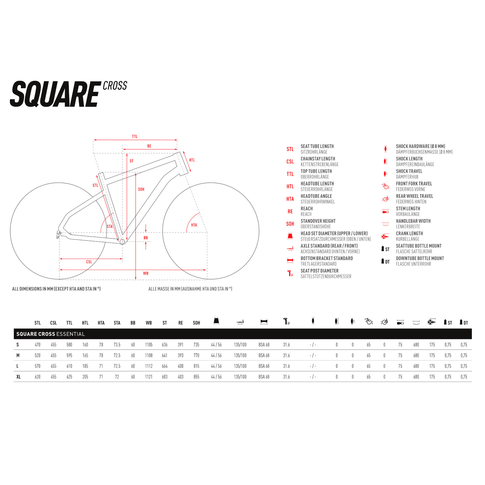 Fact Sheet of Ghost SQUARE CROSS – Cross Bike – 2023 – light grey / dark grey matt Product Name: Ghost SQUARE CROSS – Cross Bike – 2023 – light grey / dark grey matt Manufacturer: Ghost Bikes Item Code: GOS608831 activity: Cycling gender: men material: Aluminium usage bikesport: Fitness hubs: Shimano HB-TX505 ,QR ,Shimano FH-TX505 ,QR spokes: DT Swiss 2.0 rims: Rodi Excalibur XC19 chain: KMC X10 cassette: Microshift ,10-speed shifter: Microshift SL-M9505 Advent X rear derailleur: Microshift Advent X bottom bracket: Prestine PT-6621 chainring ratio: 34 crankset: Miranda Chainflow brakes: Shimano BR-MT200 ,Shimano SM-RT10 ,160/160mm seat post model: Ghost SP DC1 ,31.6mm saddle: Justek 3050 HRN handle bar: Ghost ,31.8 mm ,680 mm stem: Ghost ,31.8 mm fork: SR Suntour NEX FEM862 headset: Strummer semi-integrated frame: SQUARE Cross AL groupset: microSHIFT gear ratio: 11-48 number of gears – front: 1 shifting system: 10-speed shifting actuation: Mechanical brake type: Disc Brake wheel size: 28" (622mm) grips: Velo VLG-1751D2 seatpost: Seatpost rigid travel fork: 60mm ASTM: Category 2 tires: Schwalbe Smart Sam Performance ,47-622 brake actuation: Hydraulic Model year: 2023 Collection: Full year Color: White ,Grey fork construction: Classic Suspension Fork weight: 14200g manufacturer item code: 31SC1 cable routing: external Weight Source: Manufacturer Manufacturer page: http://www.ghost-bikes.com/ |