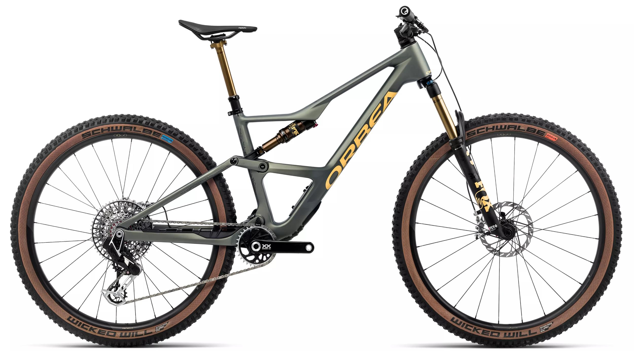 The M-LTD version of the Orbea Occam SL comes with a SRAM XX Eagle AXS wireless electronic 12-speed drivetrain. With a 32T chainring up front and an ultra-wide 10-52T cassette on the rear, you’ll be able to climb almost any hill you encounter and overcome any obstacle. SRAM Level Ultimate 4-piston hydraulic disc brakes provide superior stopping power so you can descend with confidence. OQUO Mountain Performance MP30LTD Carbon Wheels are paired with Schwalbe Wicked Will EVO TLE Tires that can be set up tubeless for a smoother ride, better traction, and fewer flats. With the Fox Transfer SL Factory Kashima Dropper, you’ll be able to smoothly lift and lower your saddle for more efficient climbing and safer descending.