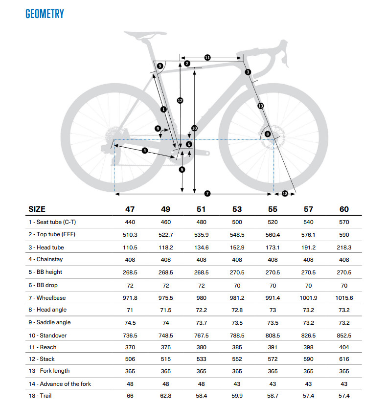 - Orbea racing geometry – The racing geometry of the Orca is the result of almost 100 years of experience in the manufacture of racing bikes and combines the perfect balance of responsiveness and stability. The aggresive posture maximizes both aerodynamics and body efficiency . The handling is precise and intuitive. All angles and dimensions are carefully matched to the different frame sizes. So you achieve with the Orca a tangible direct power transmission from the pedal to the road!