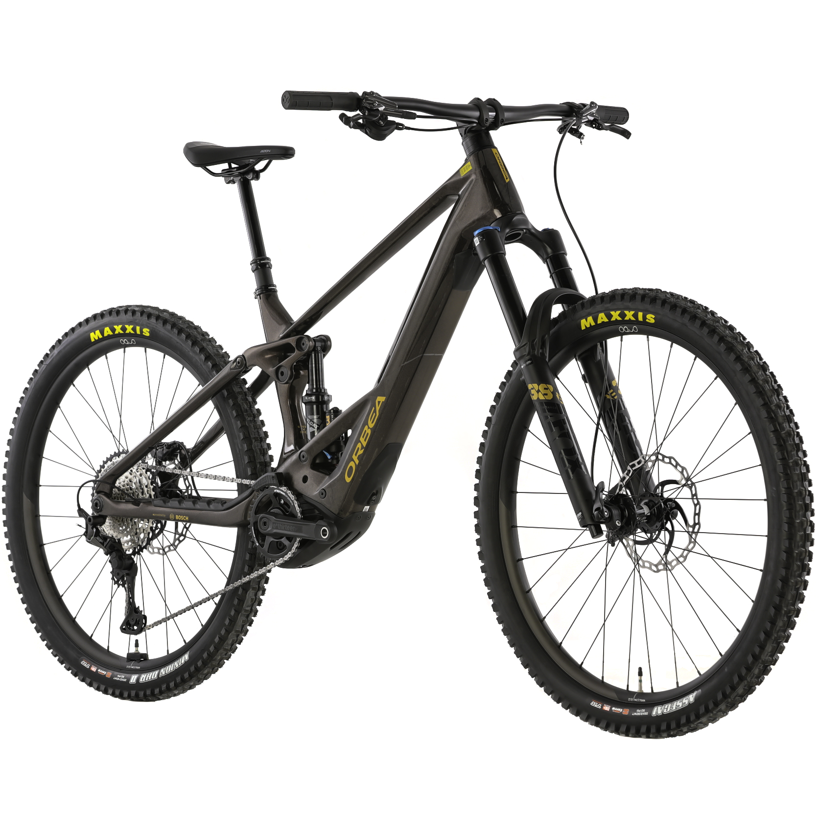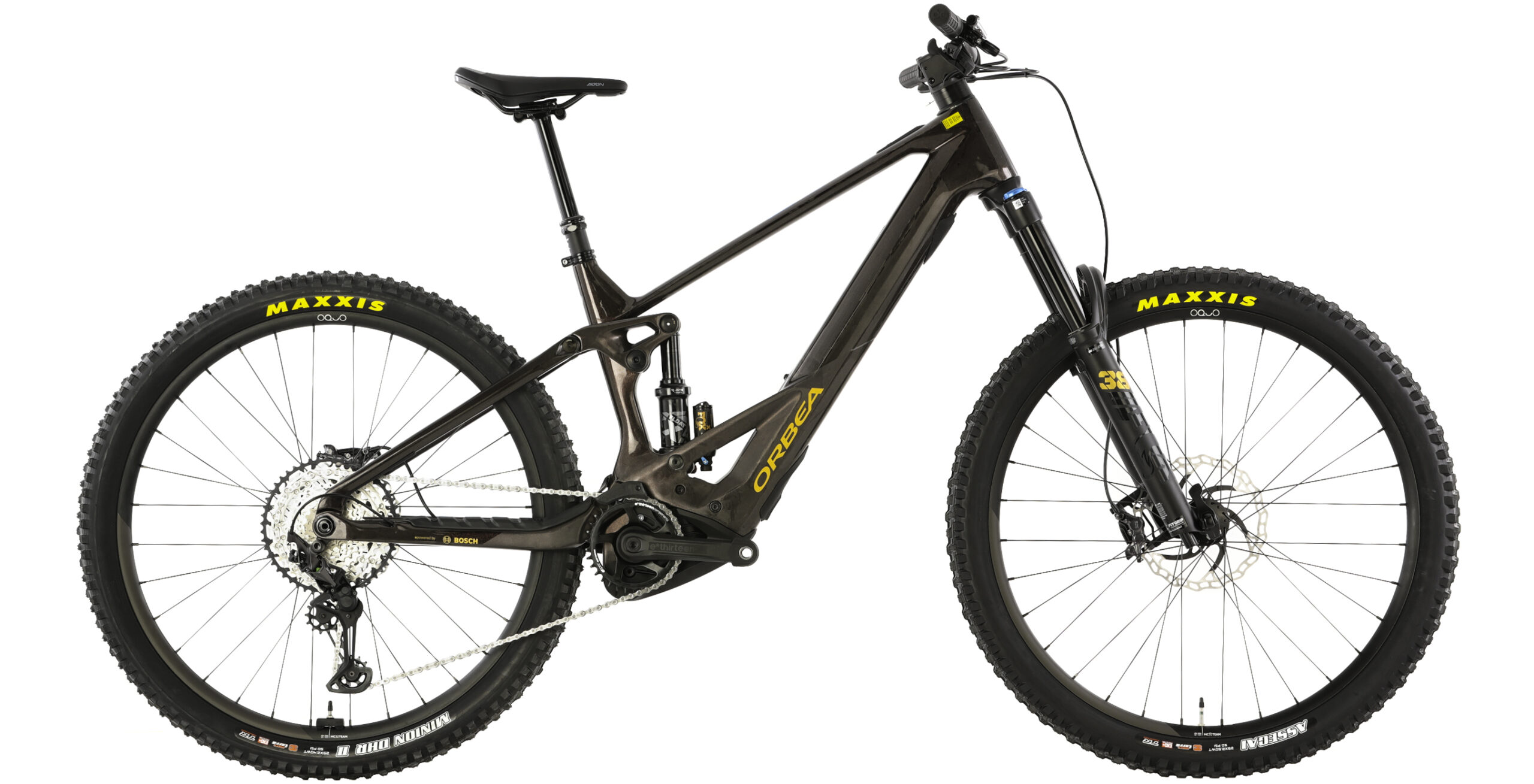 The M10 version of the Orbea Wild comes with a Shimano SLX/XT 12-speed drivetrain. This includes a cassette that has an ultra-wide 10-51T gear range that makes climbing and pedaling through difficult terrain much easier. Shimano XT M8120 Hydraulic Disc Brakes provide excellent stopping power so you can descend with confidence. OQUO Mountain Control MC32TEAM POWER eBike tubeless-ready wheels are paired with Maxxis Assegai and Minion tires that can be set up tubeless for a smoother ride, better traction, and fewer flats. With the OC Mountain Control MC21 Dropper Post, you’ll be able to quickly lift and lower your saddle with the press of a lever.