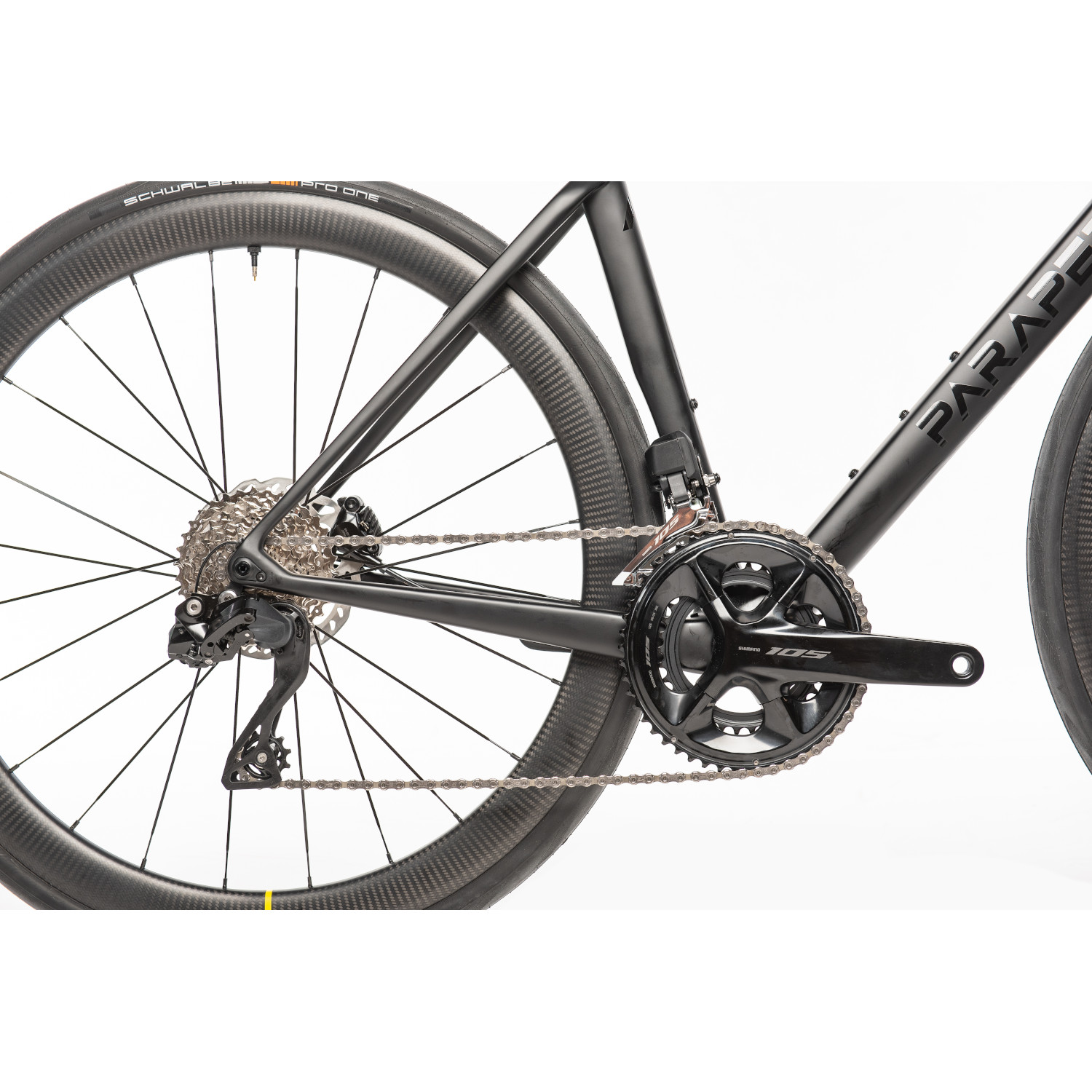 Fact Sheet of Parapera ATMOS² – Carbon Roadbike – 2024 Product Name: Parapera ATMOS² – Carbon Roadbike – 2024 Manufacturer: Parapera Bikes Item Code: PAP668857 activity: Cycling gender: men material: Carbon usage bikesport: Road Bike hubs: Mavic Infinity spokes: Aero rims: Carbon ,45-622 chain: Shimano cassette: Shimano CSR7100 shifter: Shimano 105 Di2 ST-R7170 rear derailleur: Shimano 105 Di2 front derailleur: Shimano 105 Di2 chainring ratio: 50-34 crankset: Shimano 105 FC-R7100 brakes: Shimano 105 BR-R7170 ,160/160mm wheels: Mavic Cosmic SL Carbon seat post model: Race Carbon One Piece saddle: Selle Italia SLR Boost SuperFlow X-Cross Titan bar tape: Selle Italia SG Shock Absorber handle bar: Race Carbon One Piece stem: Parapera Carbon Aero ,-10° fork: Parapera Carbon Aero headset: FSA ACR frame: Parapera ATMOS Carbon groupset: Shimano Di2 (electronic) gear ratio: 11-34 number of gears – front: 2 shifting system: 12-speed shifting actuation: Electronic brake type: Disc Brake wheel size: 28" (622mm) seatpost: Seatpost rigid tires: Schwalbe Pro One Speed ,30-622 max tire width: 34mm weight limit: 125kg brake actuation: Hydraulic Model year: 2024 Color: Black fork construction: Rigid Fork weight: 7800g cable routing: internal Weighed Version: M Manufacturer page: https://www.parapera-bikes.de/ |