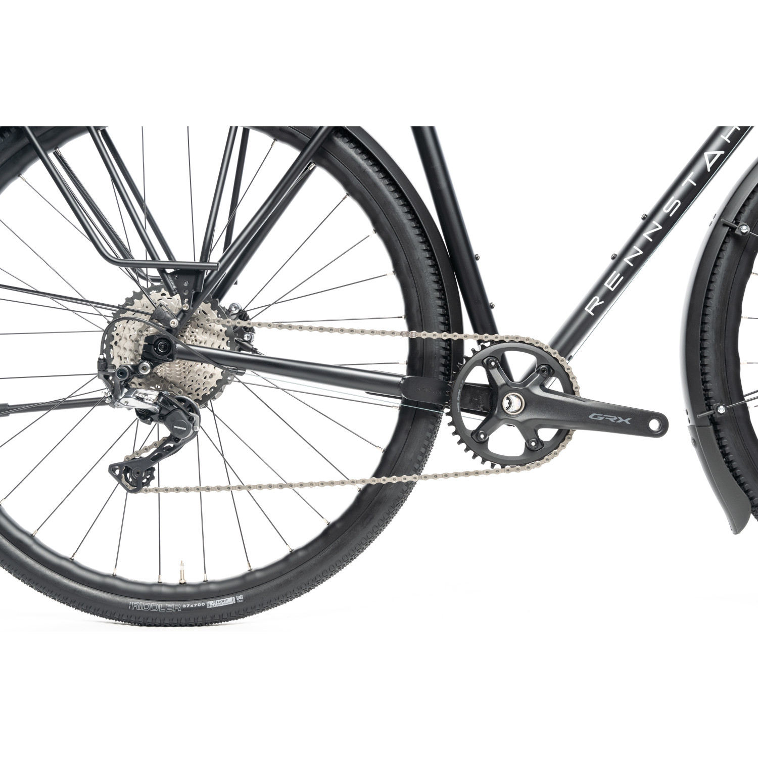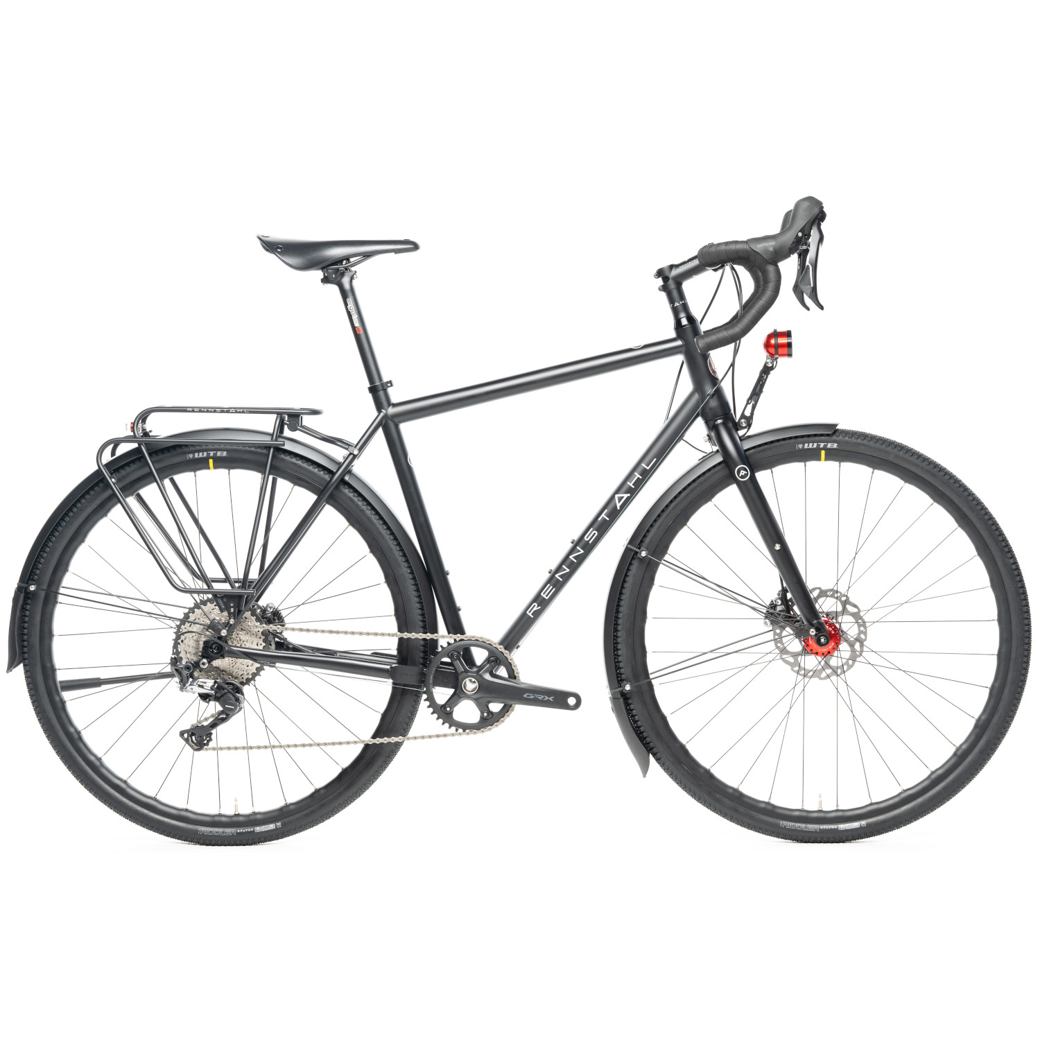 The Rennstahl 853 Randonneur follows a long and very successful tradition. The project name of this bike was “One Bike for Life”. And that already says a lot about this bike. The bottom bracket is not as high as on old-style cross-country bikes, which improves road holding at high speeds and brings the center of gravity down without bringing disadvantages off-road. In addition, hydraulic disc brakes provide optimal modulation and deceleration in any situation – whether fully loaded on fast pass descents or when riding in the rain on dusty muddy forest trails. Threaded eyelets for 3 bottle cages make the 853 Randonneur unrestricted long-distance suitable. The in-house luggage racks also contribute to this, and of course a lighting system with completely internally routed light cable.