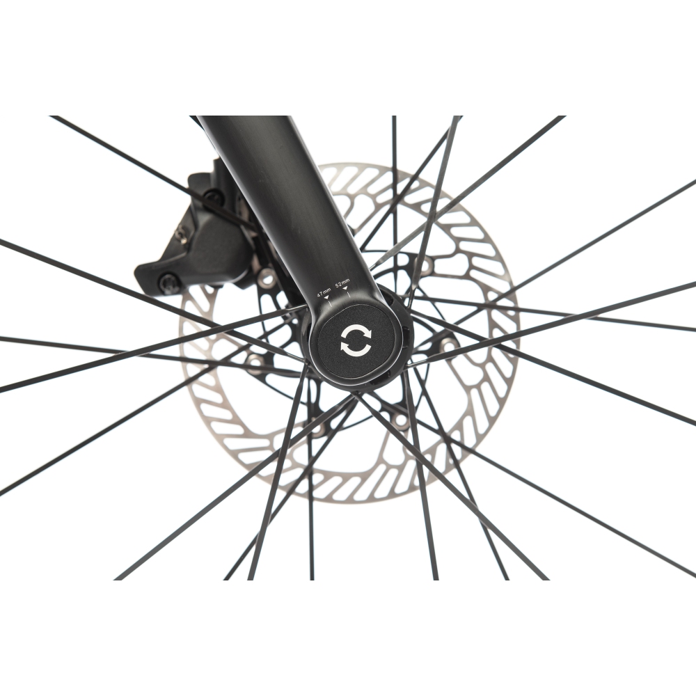 In addition, the frame can accommodate a specially designed luggage rack. A specially designed carbon seatpost with leaf spring design in the head area also gives excellent flex. In addition, the seat stay on the right side was pulled down to provide more space for the chain, especially for the modern 1x drives. With optimized tube shapes, a track-precise fork and the Campagnolo EKAR shifting group, this wheel represents in every respect a new benchmark among the Gravel bikes.