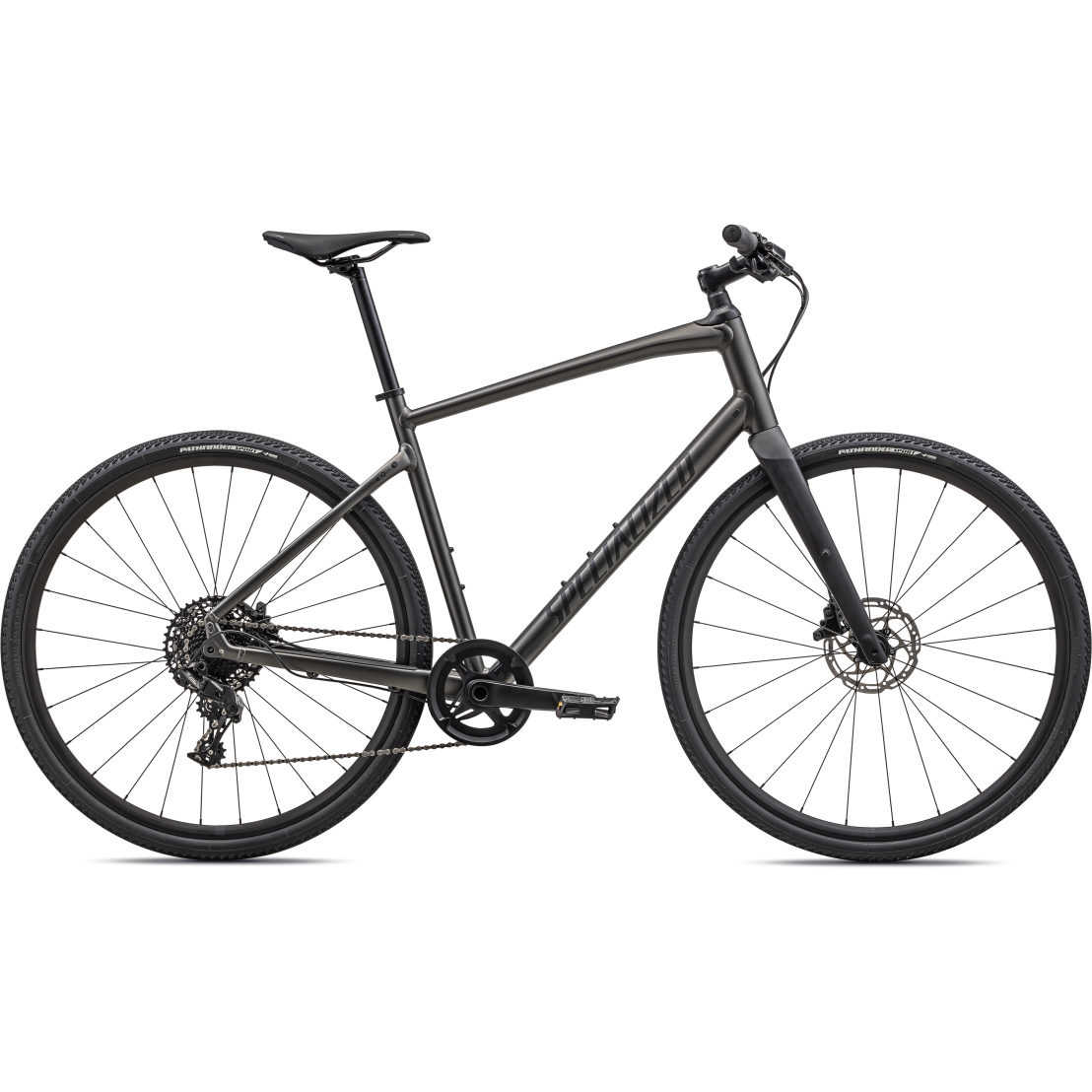 Fitness Geo groupset: SRAM gear ratio: 11-42 number of gears – front: 1 shifting system: 11-speed shifting actuation: Mechanical brake type: Disc Brake wheel size: 28" (622mm) grips: Specialized Neutralizer seatpost: Seatpost rigid tires: Pathfinder Sport