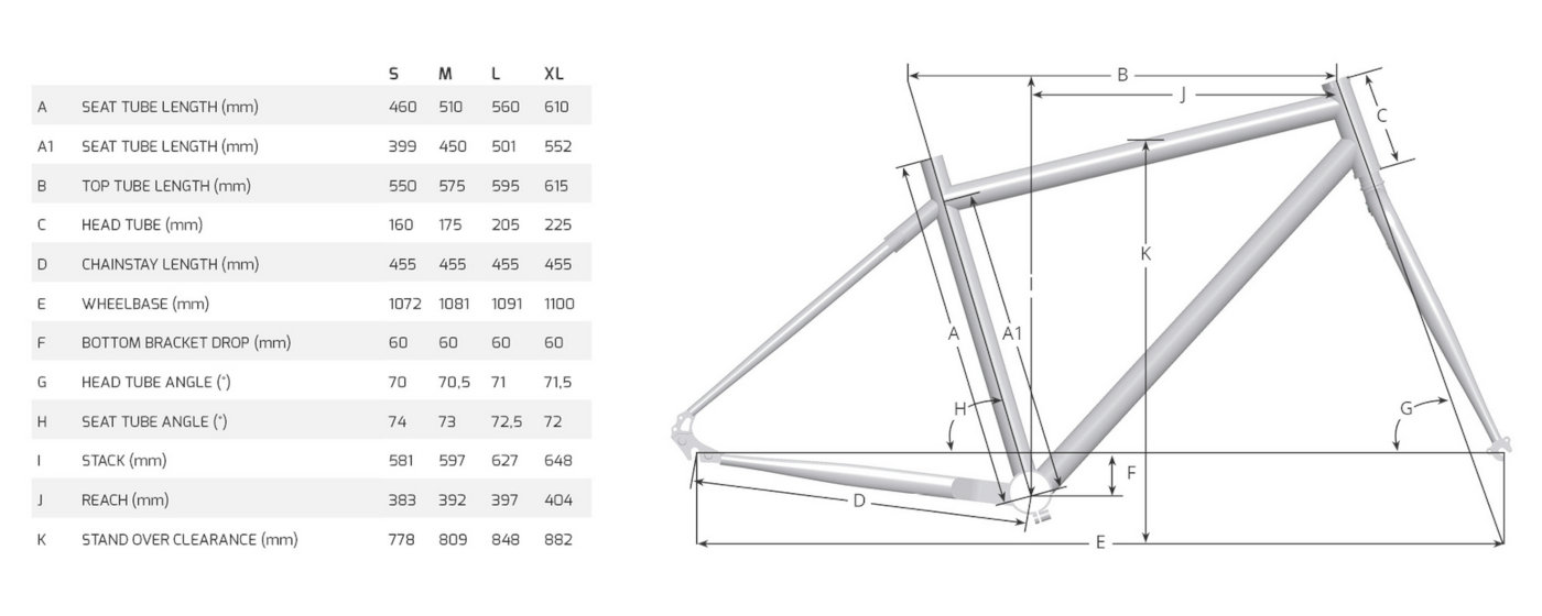 +/- 6° fork: Tout Terrain Touring Fork III headset: Acros/CaneCreek Ten frame: Blueridge Steel Thermocrom groupset: Shimano gear ratio: 11-34 number of gears – front: 2 shifting system: 11-speed shifting actuation: Mechanical bike extras: with Lighting System