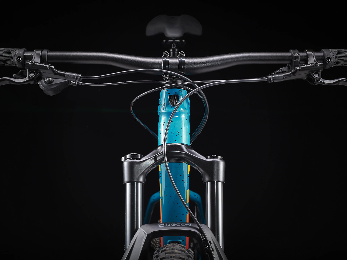 - Reliable Shimano 1×12 drivetrain with wide, climbing-friendly gear ratio.