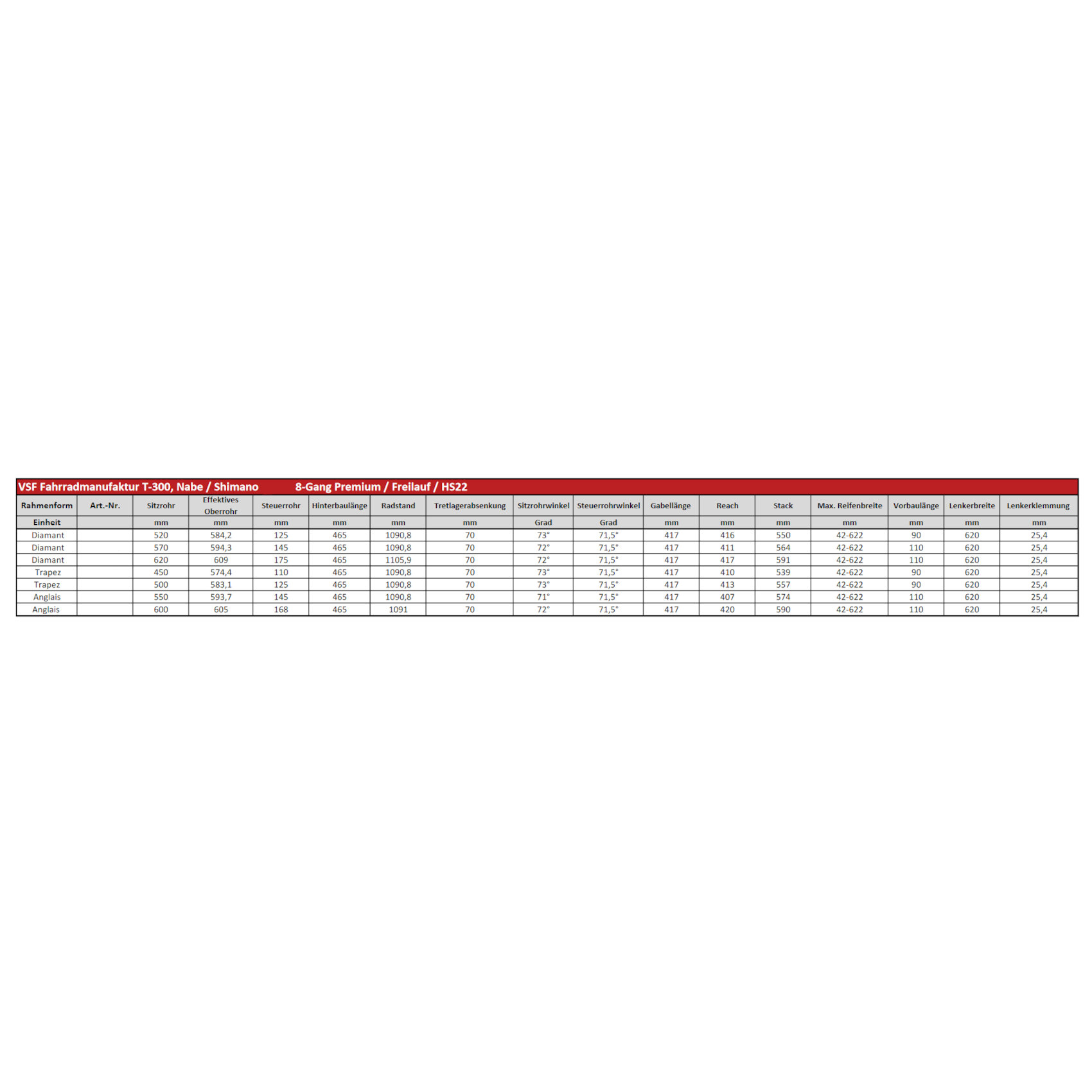 Fact Sheet of vsf fahrradmanufaktur T-300 Alfine – Men City Bike – 2023 – ebony metallic Product Name: vsf fahrradmanufaktur T-300 Alfine – Men City Bike – 2023 – ebony metallic Manufacturer: vsf fahrradmanufaktur Item Code: VSF608484 activity: Cycling gender: men material: Steel usage bikesport: City hubs: Shutter Precission PV-8 ,Hub Dynamo ,Shimano Alfine 8-speed spokes: Niro 2 ,0mm rims: Schürmann YAK19 Aluminium chain: KMC Z1 EPT cassette: Shimano sprocket shifter: Shimano Alfine rear derailleur: Shimano Alfine SG-S7001-8 bottom bracket: Thun Tango ML chainring ratio: 38 crankset: Lasco Aluminium ,170mm brakes: Magura HS22 ,incl. Brakebooster seat post model: Humpert Ergotec Atar ,Aluminium ,27.2mm ,300mm saddle: Selle Royal Ariel handle bar: Humpert Ergotec MAS Trekking ,620mm ,safety level 4 stem: Humpert Ergotec Octopus ,adjustable angle ,safety level 4 fork: 28" CrMo 4 headset: Tange Seiki Falcon FL-270C frame: 25 CrMo 4 groupset: Shimano gear ratio: 18 number of gears – front: 1 shifting system: 8-speed ,Internal Gear Hub shifting actuation: Mechanical bike extras: with Lighting System ,with Fender ,with Carrier brake type: Rim Brake wheel size: 28" (622mm) bike special accessories: Busch & Müller LED light ,SKS fenders ,Pletscher Zoom kickstand ,Racktime Tour It rear rack ,Hebie Chainglider bike lights: Busch & Müller Lumotec Eyc ,50 LUX ,Busch & Müller ,Toplight 2C grips: Herrmans Grit D33 seatpost: Seatpost rigid pedals: Marwi SP-823 tires: Schwalbe Marathon ,40-622 ,reflex brake actuation: Hydraulic Model year: 2023 Color: Black fork construction: Rigid Fork weight: 16800g cable routing: external Weight Source: Manufacturer Manufacturer page: https://www.fahrradmanufaktur.de/ |